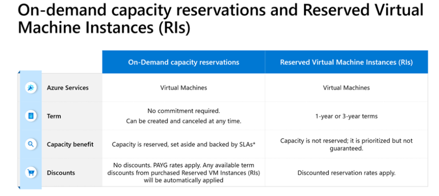 - Business-critical applications—use on-demand capacity reservations to protect your capacity, for example when taking these VMs offline to perform updates.